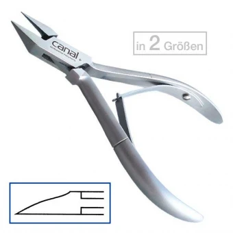 Rostfrei, durchgesteckt, mit Doppelfeder und mit extra schlanker Spitze. Ideal geeignet, um eingewachsene Nägel freizusetzen.
