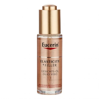 Eucerin ELASTICITY + FILLER Gesichts-Öl wirkt gleich mehrfach gegen die Zeichen der Hautalterung. Das Öl der Mariendistel, Vitamin E und Arganöl, verbessern die Elastizität, glätten die Hautoberfläche und erhöhen die Widerstandskraft der Haut. Hinterlässt seidenweiches Hautgefühl.